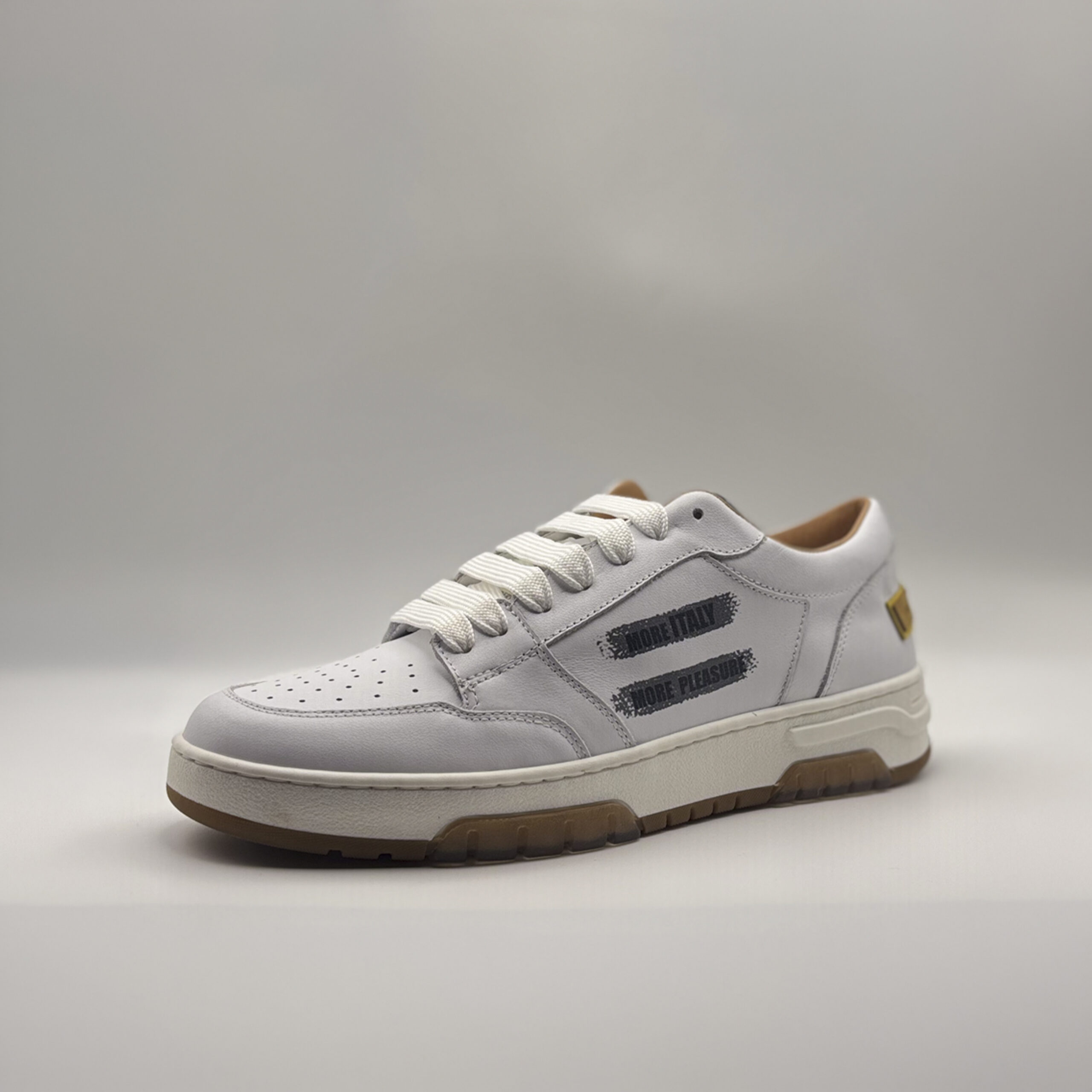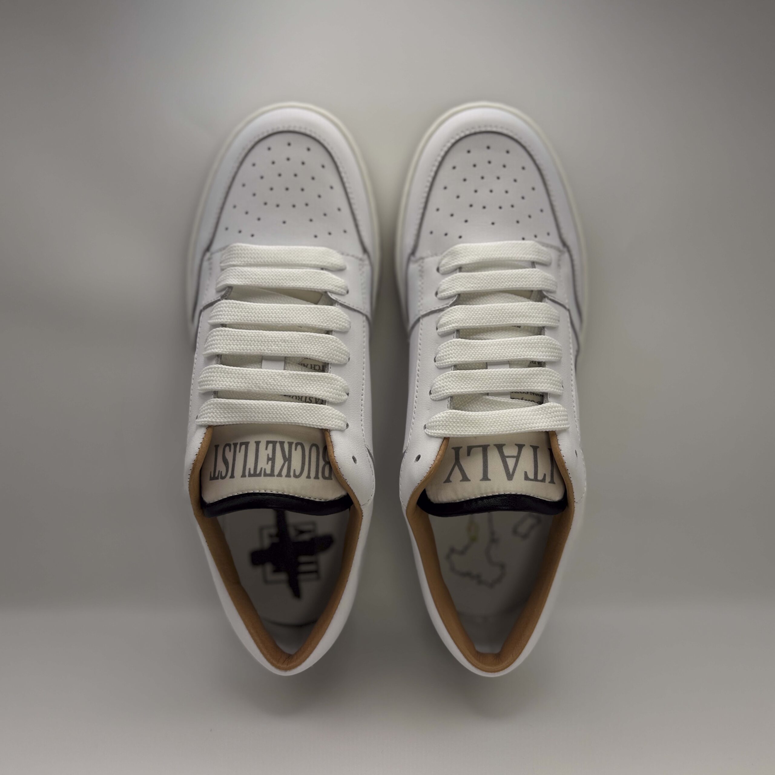 White Calf Leather Upper, Padded tongue in white Nylon, Leather Lining col. white, Footbed in leather col.